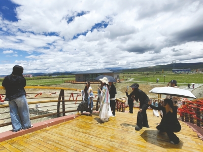 5月27日,由400余名在綿高校師生和市民組成的“萬人上紅原”首發(fā)團前往紅原。在紅原期間,游客先后到阿拉巴扎唐卡培訓中心、紅原易地育人學校等地感受當?shù)匾蕴瓶?、民間彈唱、民間舞蹈等為代表的特色非遺,到雅克鹿之谷景區(qū)、月亮灣景區(qū)體驗大草原風光,在紅原賽馬場感受中國“馬術之鄉(xiāng)”的激情,到日干喬大沼澤、紅軍過草地紀念碑等地,聆聽紅軍長征的故事,感受偉大的紅軍長征精神。