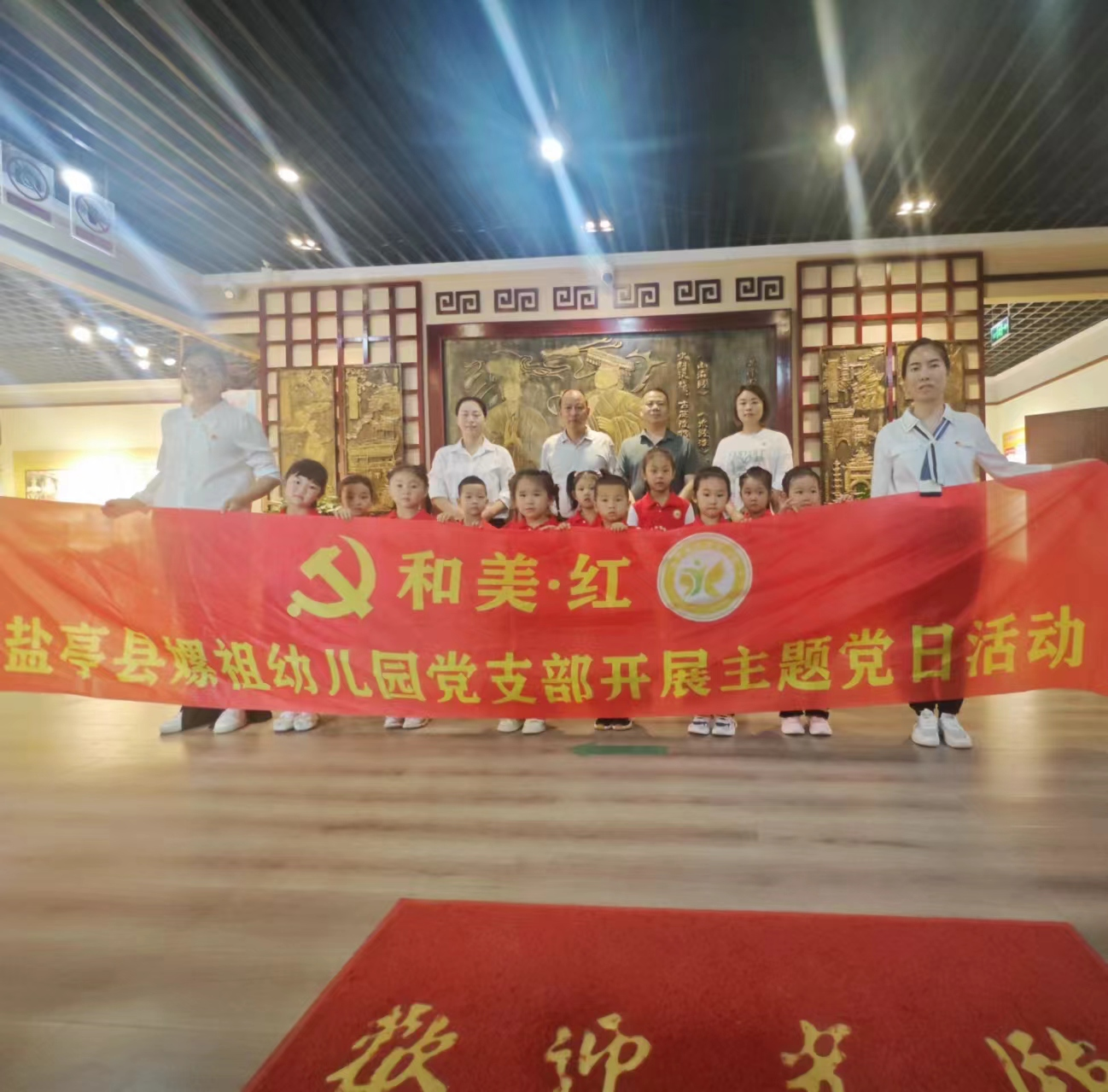 當(dāng)日,該園黨支部書記李河山帶領(lǐng)全體黨員和部分幼兒到鹽亭縣博物館開展“紅色基因傳承 童夢邂逅歷史”主題黨日活動暨課題“將本土資源文化融入幼兒園主題課程”教育實踐活動。