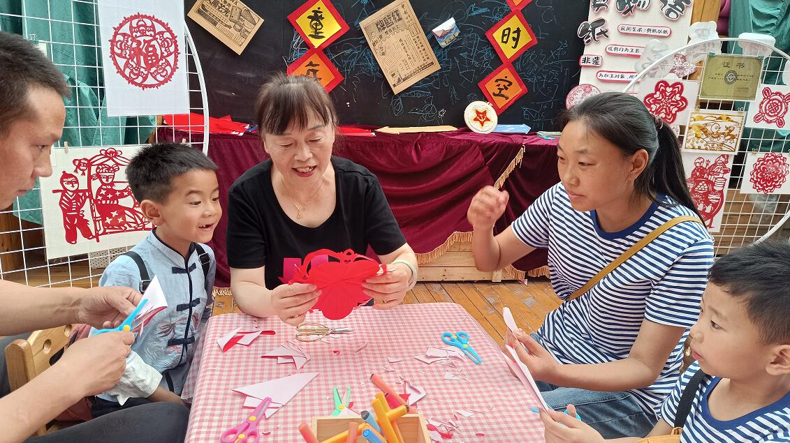 該園結(jié)合園所課程,將每年六月設(shè)定為游戲月,開展系列豐富多彩活動,本月活動之一——“印象北街·年代秀”主題活動,設(shè)置了年代秀、暢游北街、非遺課堂等三個板塊。年代秀場上,家長和孩子身著復(fù)古服裝從T臺緩緩走來,向我們展示著不同年代的風(fēng)采。暢游北街項目豐富多彩。可以自制手工作品,如制作風(fēng)車、發(fā)夾等,既培養(yǎng)孩子的動手能力,讓家長和孩子一起體驗生活,增進(jìn)親子感情,共享成長時光??梢酝?zhèn)鹘y(tǒng)游戲,讓家長回到“挑棍兒”“打盒子”“打彈珠”“踢毽子”的童年,讓孩子體驗爸爸媽媽小時候的游戲??梢云穱L美味的“冰糖葫蘆”“夏日果汁”“水果繽紛”,大家一起感受六月獨有的甜蜜。最吸引家長和孩子的是“非遺課堂”,“剪紙”是用剪刀在紙上剪刻花紋,裝點生活的民間藝術(shù),訓(xùn)練了孩子們的精細(xì)動作,提高了他們欣賞美創(chuàng)造美的能力。最讓孩子駐足流連的是糖畫的制作過程,只見糖漿熔化后,在石板上飛快揮灑、繪制,瞬間凝固成形,綻放出別樣的光彩。