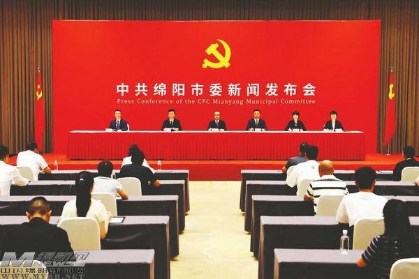 6月13日,中共綿陽市委新聞發(fā)布會(huì)現(xiàn)場(chǎng)。(記者陳冬冬攝)