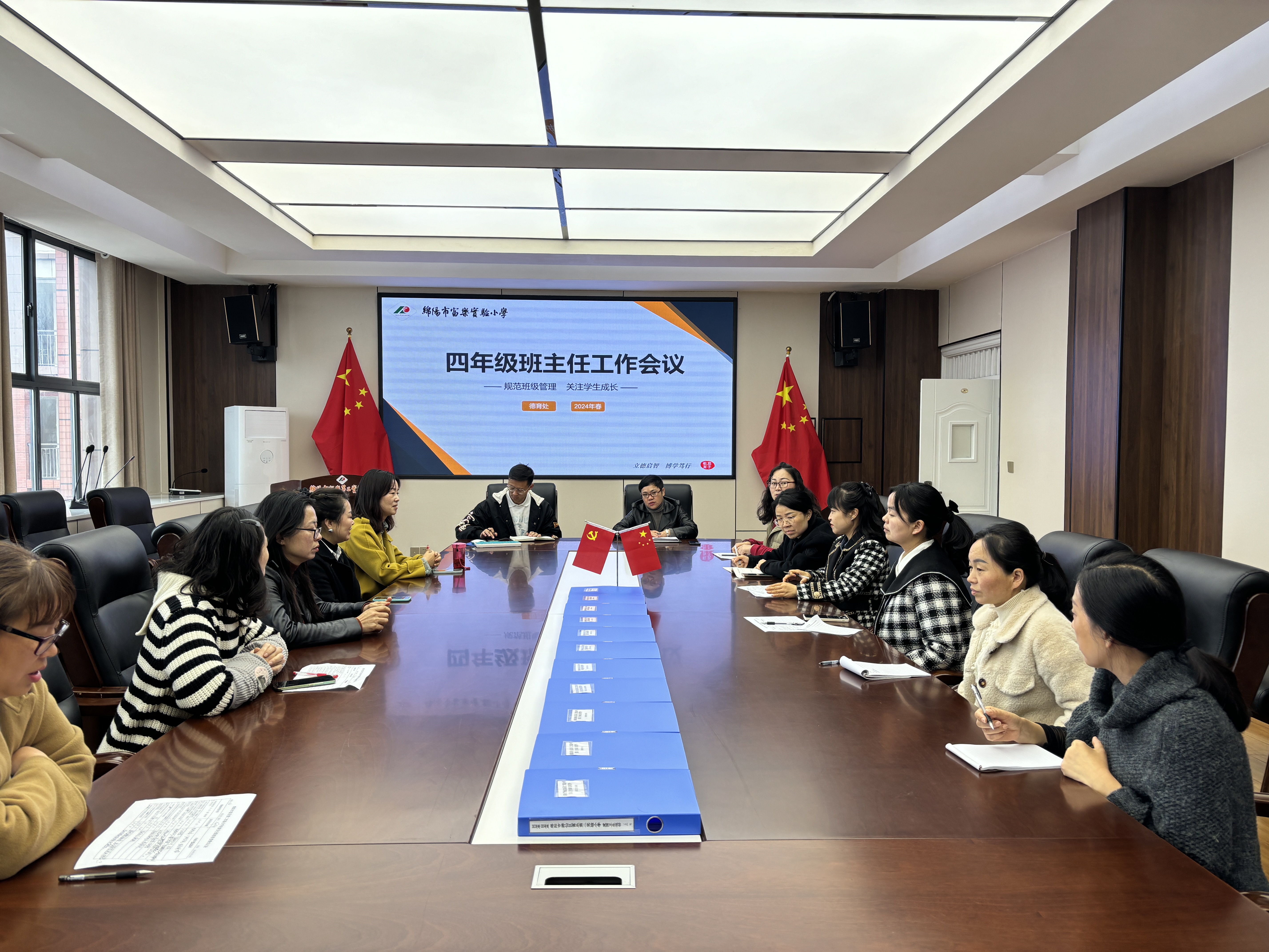 近日,綿陽市富樂實驗小學(xué)在會議室召開了以“抓常規(guī)、重安全、共育富樂好少年”為主題的2024年春季學(xué)期四年級班主任工作會議。會議以進一步明確學(xué)校德育工作要求,強化德育安全管理,提高班主任育人工作實效為主題,由德育處敬老師主持,四年級聯(lián)系副校長滕敏及四年級全體班主任參加了此次會議。