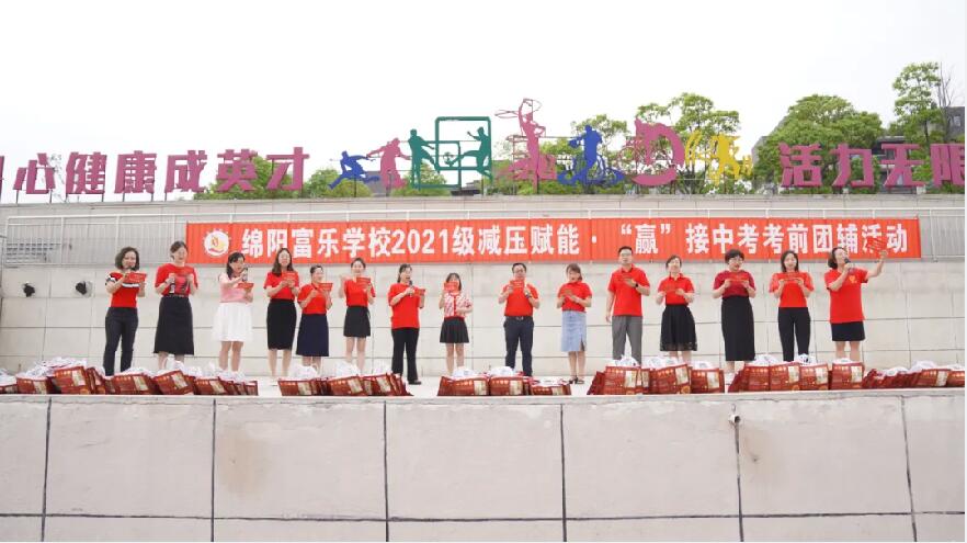 6月6日,綿陽富樂學(xué)校在操場上集會,開展了以“解壓賦能,‘贏’接中考”為主題的2024年中考考前團(tuán)輔活動,所有科任老師,以教研組為單位,或朗誦、或舞蹈,或歌曲、或小品,花式百出,愛意滿滿,為同學(xué)們寄寓意,送祝福,幫助同學(xué)們卸下包袱,舒緩壓力,更好的前行。解壓活動由李磊老師、劉悅老師主持。