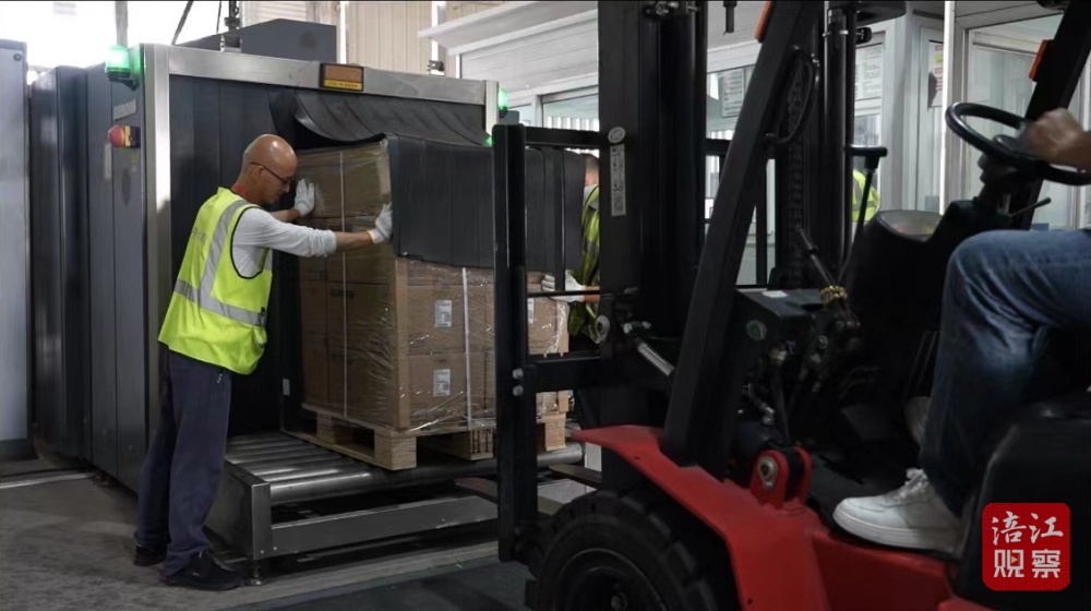 另一邊,當(dāng)晚起飛前往深圳的貨機(jī),也在準(zhǔn)備著。貨主提前將貨物運(yùn)到綿陽南郊機(jī)場貨運(yùn)大樓,辦理好相關(guān)手續(xù),機(jī)場工作人員統(tǒng)一安檢。隨后,工作人員將貨物運(yùn)上傳送帶。機(jī)艙內(nèi),工作人員逐一將貨物有序放置在寬敞的機(jī)艙內(nèi)。