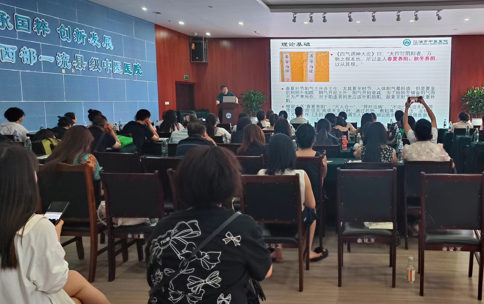 培訓(xùn)授課由江油市中醫(yī)醫(yī)院大內(nèi)科、肺病科主任吳頌良,兒科主任李洪斌,針灸康復(fù)科主任梁金梅擔(dān)任。來自全市各醫(yī)療機(jī)構(gòu)的近300余名中醫(yī)從業(yè)人員參加了此次培訓(xùn)。