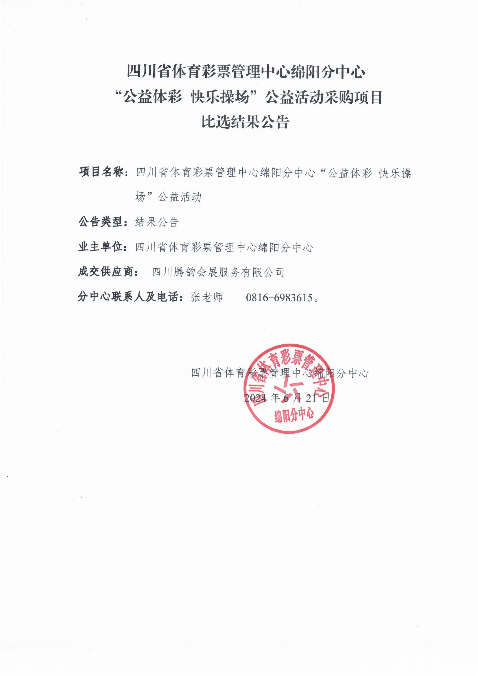 四川省體育彩票管理中心綿陽分中心“公益體彩快樂操場”公益活動采購項目比選結(jié)果公告