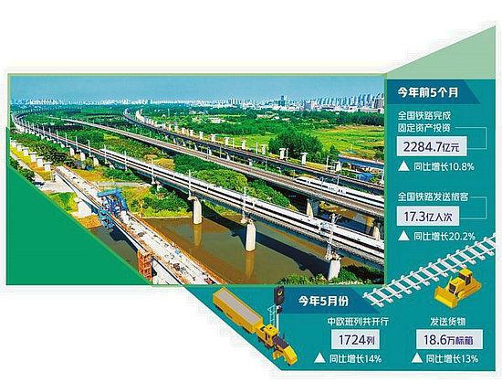 今年以來,我國鐵路建設勢頭強勁,一大批重大工程建設加速,高鐵新動作不斷,鐵路網整體功能進一步提升。同時,中歐班列單月運量再創(chuàng)新高,“公轉鐵”勢頭良好,鐵路客貨運輸能力進一步增強,為推動我國經濟持續(xù)回升向好、保障人民群眾生產生活提供了有力支持。