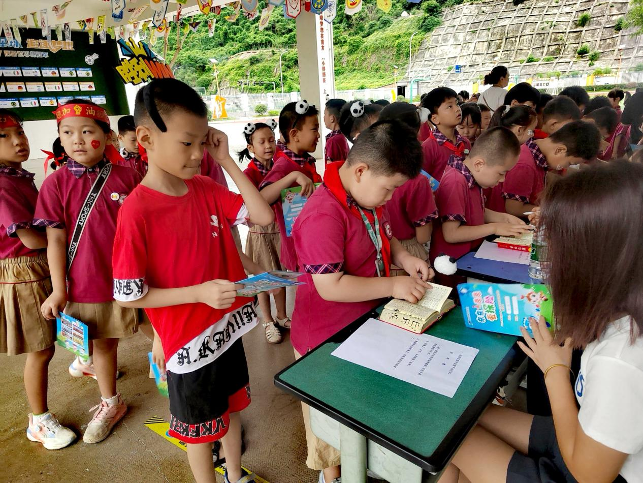 語文老師將學(xué)科知識與關(guān)卡巧妙融合,考查學(xué)生對知識的掌握情況。設(shè)計了聽、說、讀、背、查共5個闖關(guān)活動。孩子們興致高昂,自信表達(dá),他們充分發(fā)揮自己的聰明才智。博觀而約取,厚積而薄發(fā)。在語文樂園中,孩子們聲情并茂地朗讀字詞,用稚嫩的聲音講述著他們的奇思妙想。在認(rèn)字、組詞、背誦、口語交際等環(huán)節(jié)中,他們做到了敢說、會說、樂說,順利完成了闖關(guān)挑戰(zhàn)。老師們認(rèn)真把關(guān),注重激勵,客觀評價。