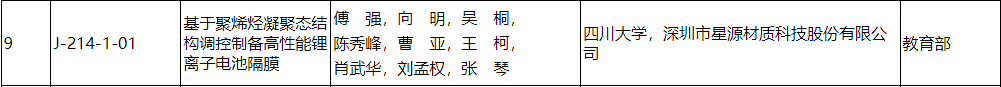 四川大學(xué)、深圳市星源材質(zhì)科技股份有限公司——基于聚烯烴凝聚態(tài)結(jié)構(gòu)調(diào)控制備高性能鋰離子電池隔膜項(xiàng)目,獲得2023年度國家科技進(jìn)步獎(jiǎng)一等獎(jiǎng);