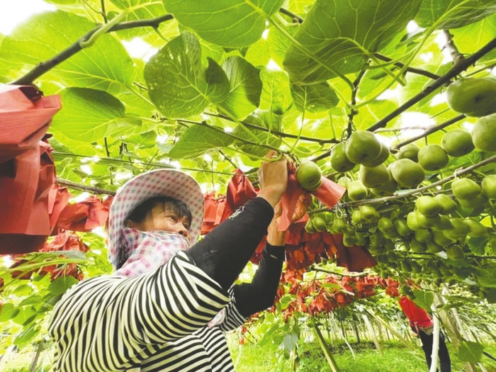 近日,安州區(qū)黃土鎮(zhèn)現(xiàn)代獼猴桃產(chǎn)業(yè)園區(qū),民生村人才驛站站長蘇軍正在果園內(nèi)手把手指導(dǎo)果農(nóng)對獼猴桃進行套袋。蘇軍告訴記者,夏季是獼猴桃果園管理的黃金期,套袋相當于給果子穿上一件“防曬衣”,給果子保鮮避免長斑,讓獼猴桃的皮更嫩,顏色也好看,為獼猴桃今年的好收成打下基礎(chǔ)。