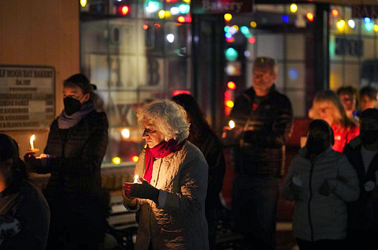2023年1月31日,在美國(guó)加利福尼亞州半月灣市,人們手持蠟燭哀悼槍擊事件遇難者。新華社記者吳曉凌攝