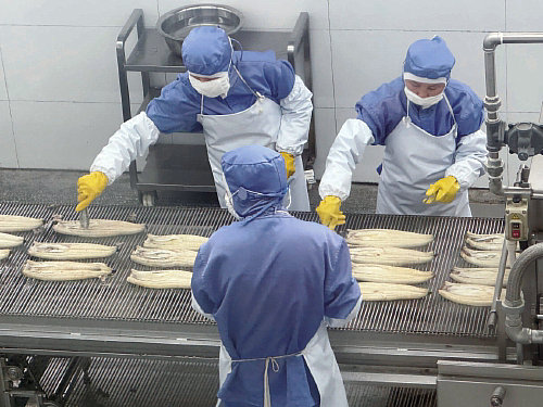 工人在烤鰻加工線上作業(yè)。農(nóng)民日報·中國農(nóng)網(wǎng)記者 楊惠 攝