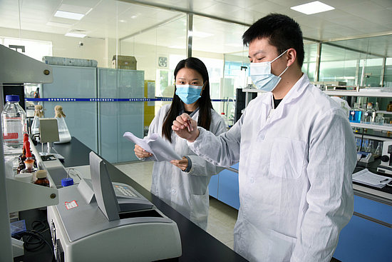 研發(fā)人員正在工程技術(shù)中心檢測(cè)分析發(fā)酵液狀態(tài)。成都金開生物工程有限公司供圖