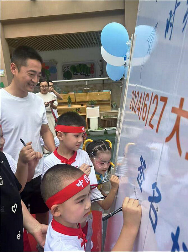 活動伊始,家長和孩子們陸續(xù)入場,他們紛紛在精心設(shè)計的簽到墻前留下自己的簽名,每一個名字都代表著一份成長的印記,一段難忘的記憶。