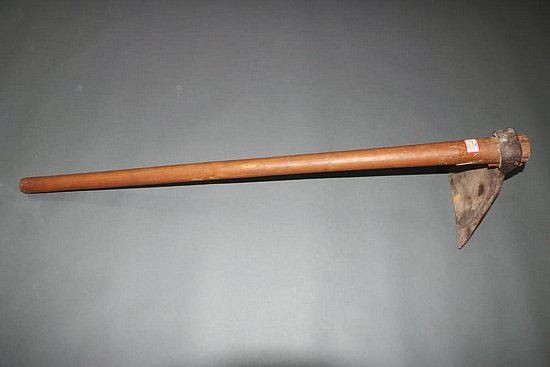 八路軍三五九旅戰(zhàn)士用過(guò)的镢頭。延安革命紀(jì)念館供圖