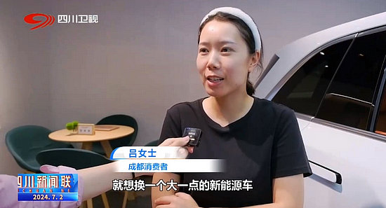 成都消費者 呂女士:我們原來有個油車,就想換一個大一點的新能源車,了解到有這樣的一個政策,然后多1000塊錢置換補貼,所以今天就趕緊過來看。