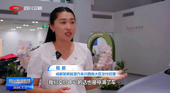成都某新能源汽車川西南大區(qū)交付經(jīng)理 隋新:大概有個20%左右的這樣的一個增幅,我們交付中心的話也是停滿了車,然后這個只是今天上午的,下午還會再有一批車進來,今天大概有個20多臺的一個交付量,也是本月的最高峰。