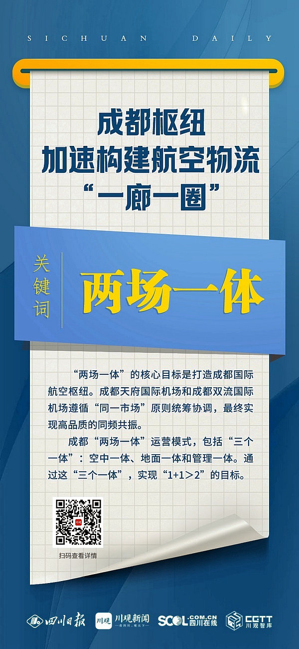 成都國際航空樞紐(雙流機(jī)場+天府機(jī)場)是民航局確定的成渝世界級機(jī)場群的雙核樞紐之一。以高水平對外開放推動高質(zhì)量發(fā)展,三年來,四川探索雙流機(jī)場、天府機(jī)場“兩場一體”運(yùn)營模式,把加快建設(shè)國際門戶樞紐城市作為核心任務(wù),正加速構(gòu)建11小時(shí)“亞歐空中貨運(yùn)走廊”和5小時(shí)“亞太空中貨運(yùn)圈”。