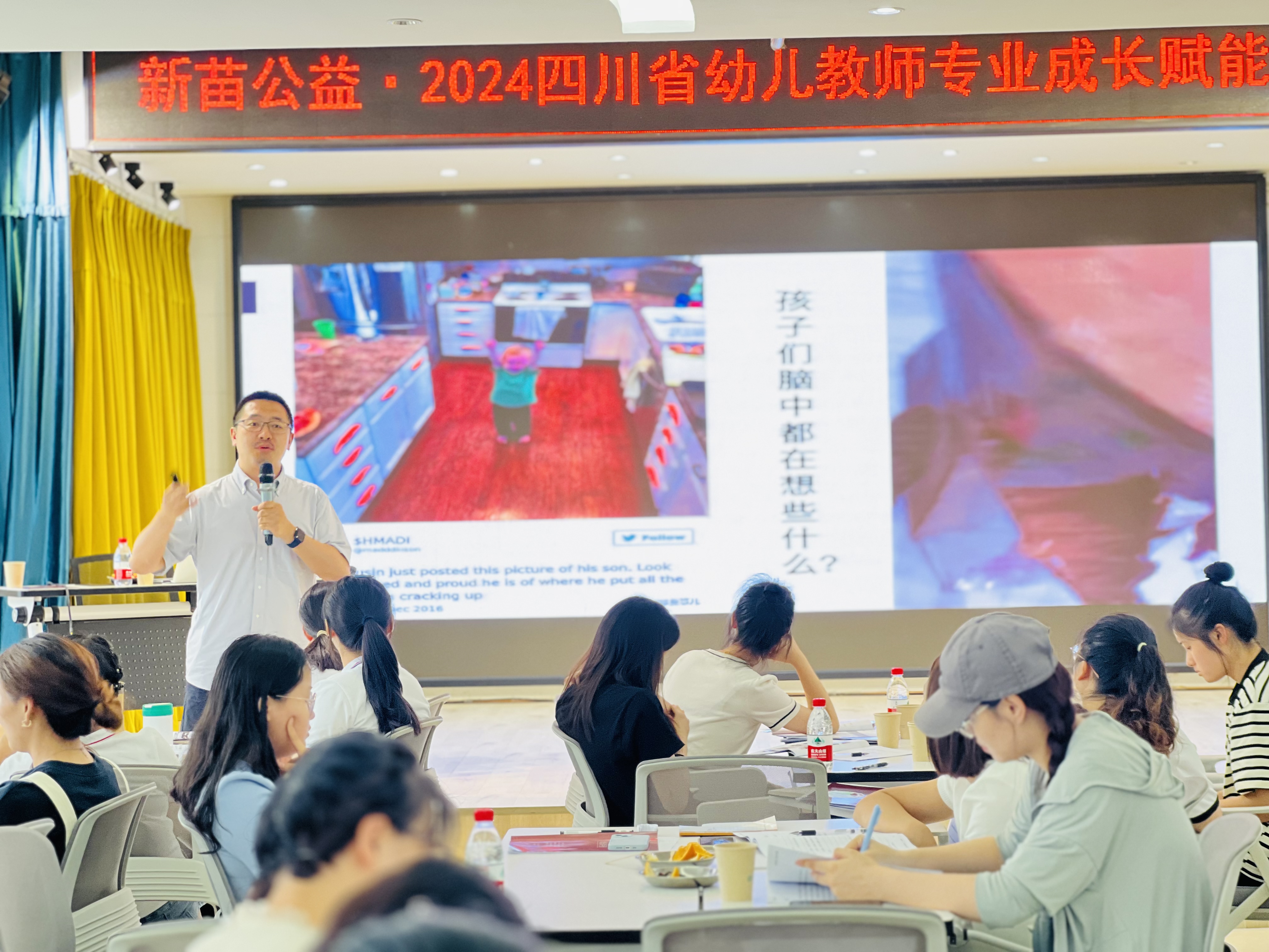 綿陽市教育基金會秘書長葉強對新苗公益的捐助表示感謝,同時他感謝長期在一線的幼兒教師們,并希望參加此次培訓(xùn)活動的老師們認真學習,將先進教學方法、理念帶回園所,起到“傳幫帶”的作用。希望受贈的8所幼兒園更好地將捐贈材料運用。