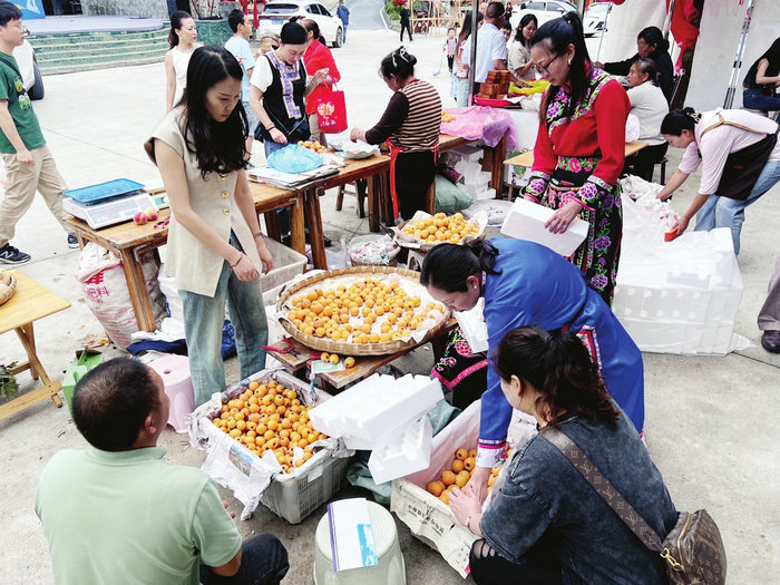 游客在石椅羌寨買枇杷