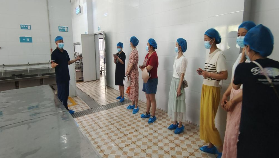活動初始,家長們來到食堂,大家看到的是干凈整潔、擺放整齊的餐具和食品庫里的備用食材。廚房的工作臺、烹飪間、洗消間整潔,消毒設備齊全。該校聘請了專業(yè)的營養(yǎng)健康指導團隊,為學生每天的健康食譜合理搭配。