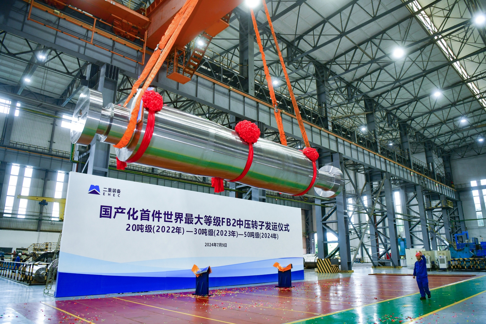 直徑1200mm、重50余噸——7月9日,又一件“重器”從四川德陽發(fā)運。這是國產(chǎn)化首件世界最大等級FB2中壓轉(zhuǎn)子,由國機重裝所屬二重(德陽)重型裝備有限公司(簡稱二重裝備)研制,標志著我國企業(yè)全面攻克FB2材料大型鑄鍛件制造技術(shù),實現(xiàn)FB2轉(zhuǎn)子國產(chǎn)化全系列批量化覆蓋。