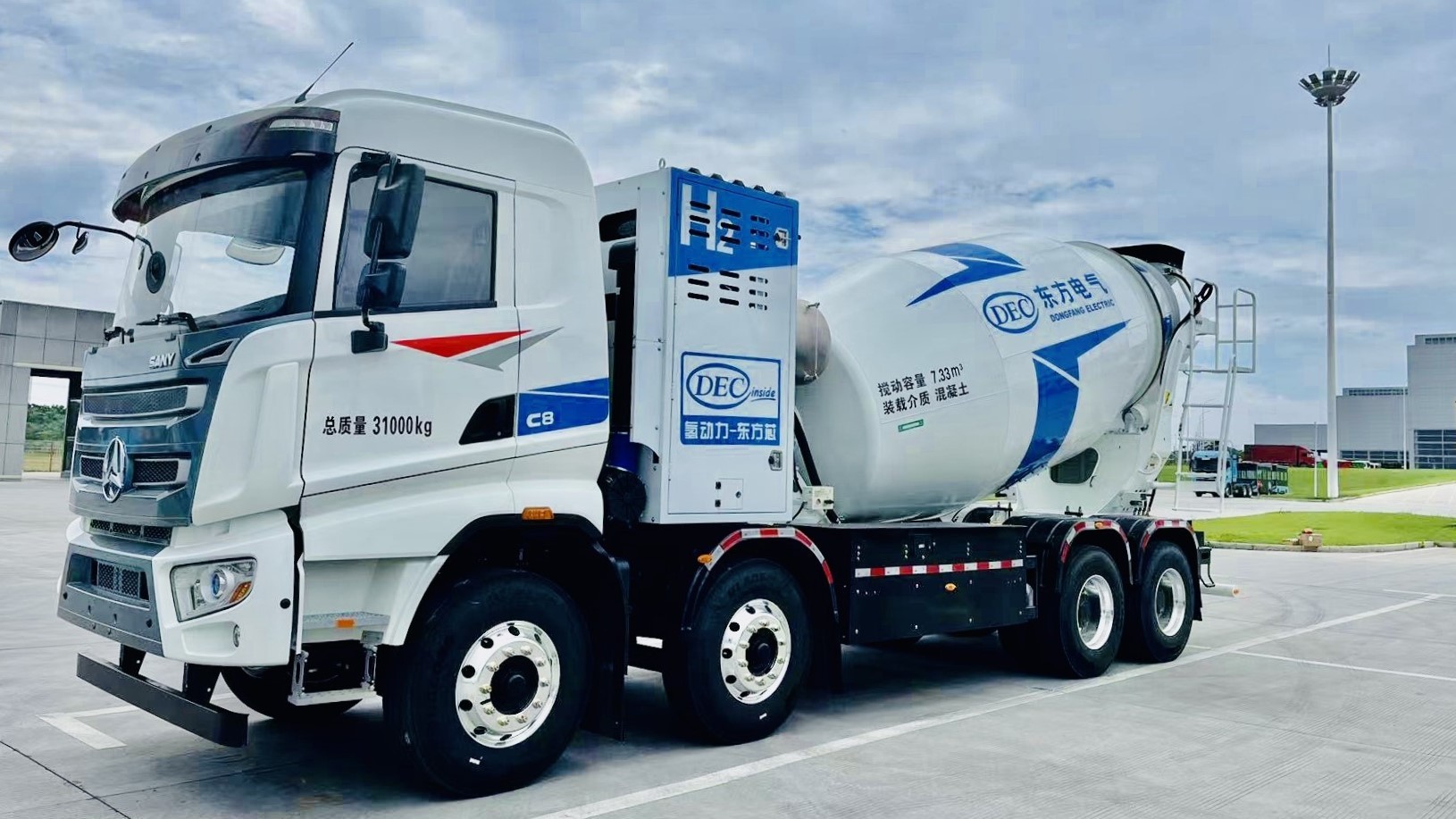 搭載氫燃料電池系統(tǒng)的攪拌車。(東方氫能供圖)