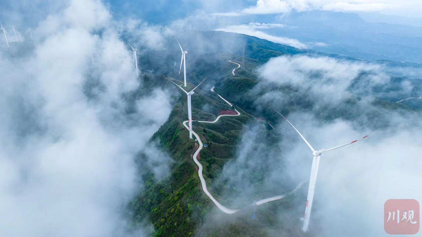 位于古藺縣德耀鎮(zhèn)的中廣核風力發(fā)電廠,呈現出日落云海美景。川觀新聞資料圖