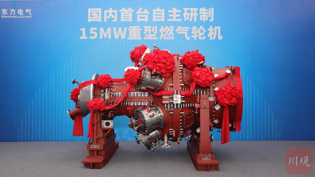 國內首臺自主研制15兆瓦重型燃氣輪機(代號:G15)在德陽正式下線。(王攀 攝)
