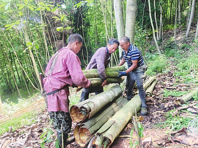 工人搬運(yùn)厚樸,用無人機(jī)向山下轉(zhuǎn)運(yùn)