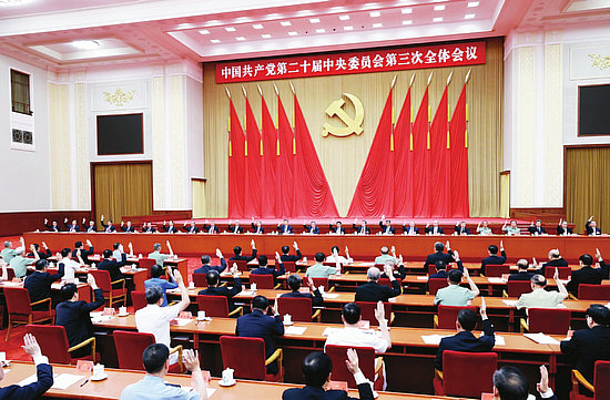 ?。ǎ玻埃玻茨辏吩拢保溉罩袊?guó)共產(chǎn)黨第二十屆中央委員會(huì)第三次全體會(huì)議通過(guò))