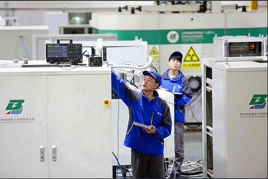 6月7日,綿陽(yáng)經(jīng)開(kāi)區(qū),四川玖誼源粒子科技有限公司(以下簡(jiǎn)稱玖誼源)的廠房?jī)?nèi),工人們正忙著調(diào)試醫(yī)用回旋加速器。