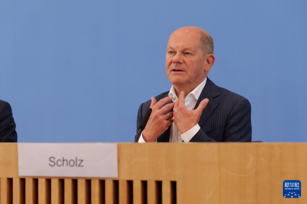 7月24日,德國總理朔爾茨在柏林舉行的新聞發(fā)布會(huì)上講話。新華社記者 李函林 攝