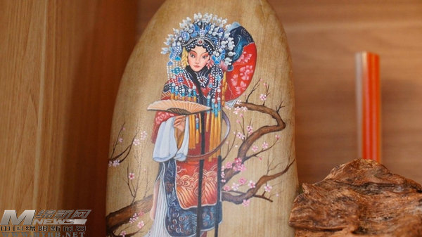 近日,記者來到張霞石藝工作室,環(huán)壁的櫥架上,風(fēng)光旖旎的山水、嬌艷無比的花草、雍容華麗的戲劇人物扮相、呆萌可愛的熊貓……從擺件到掛件、從吊墜到居家器物。這些石畫緣自形態(tài)各異的石頭,生動而細膩的繪畫功底令人驚嘆。