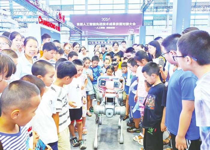 人工智能創(chuàng)新成果展吸引眾多孩子和家長圍觀體驗