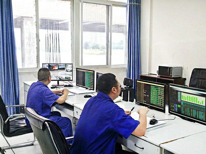 連日降雨,涪江水位上漲。在科光電站值班室內(nèi),閘門情況、水量變化在電腦上一覽無余,工作人員每隔一小時就要進行圖文消息記錄。