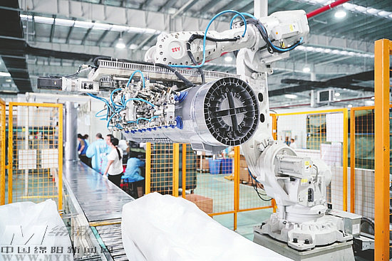 在長虹空調(diào)各大生產(chǎn)廠區(qū),全自動(dòng)機(jī)器人下線堆碼冷凝器(黃色機(jī)械臂)、協(xié)作機(jī)器人安裝空調(diào)壓縮機(jī)(白色機(jī)械臂)隨處可見。目前,長虹空調(diào)擁有行業(yè)先進(jìn)的AT裝備400余臺(tái)(套),大規(guī)模優(yōu)先推動(dòng)高品質(zhì)要求、高強(qiáng)度及高危險(xiǎn)崗位的機(jī)器換人,已實(shí)現(xiàn)關(guān)鍵質(zhì)控點(diǎn)工序智能化設(shè)備100%全覆蓋,實(shí)現(xiàn)關(guān)鍵制程核心數(shù)據(jù)100%自動(dòng)采集。