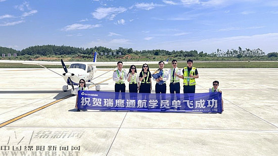 “12RK已檢查好,請示開車。”瑞鷹通航學(xué)員秦熠熟練的進行著單飛前的最后一次報話。伴隨著一系列干凈利落的技術(shù)指揮以及飛行實操,秦熠駕駛訓(xùn)練飛機平安地在北川永昌機場著陸,成為該機場首位單飛成功的學(xué)員。