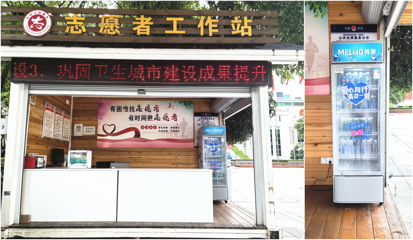 為給一線(xiàn)的戶(hù)外高溫工作者們送上清涼補(bǔ)給,自7月25日起,涪江觀(guān)察客戶(hù)端聯(lián)合多個(gè)愛(ài)心部門(mén)、企業(yè)推出“愛(ài)心同行 清涼一夏”活動(dòng),涪寶的“愛(ài)心冰柜”亮相于綿陽(yáng)城區(qū)各個(gè)街頭。