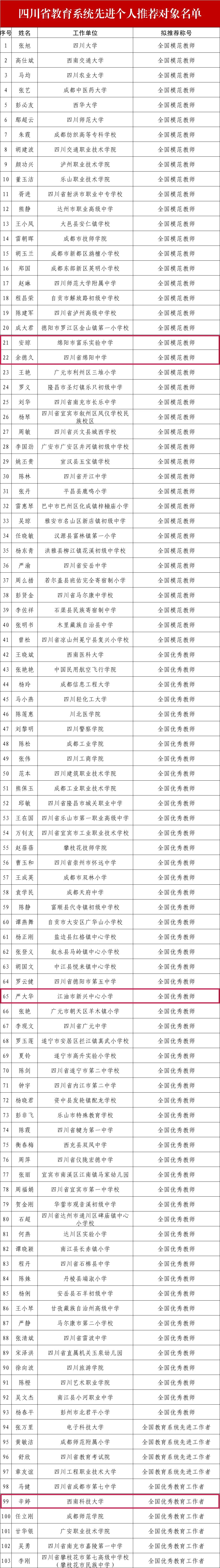 根據(jù)《人力資源社會(huì)保障部 教育部關(guān)于開展2024年全國(guó)教育系統(tǒng)先進(jìn)集體和先進(jìn)個(gè)人評(píng)選表彰的通知》(人社部函〔2024〕64號(hào))要求,通過逐級(jí)推薦和評(píng)選,經(jīng)全國(guó)教育系統(tǒng)評(píng)選表彰工作領(lǐng)導(dǎo)小組初審?fù)?,確定四川大學(xué)高分子材料工程國(guó)家重點(diǎn)實(shí)驗(yàn)室等28個(gè)集體為“全國(guó)教育系統(tǒng)先進(jìn)集體”推薦對(duì)象,張旭等41名同志為“全國(guó)模范教師”推薦對(duì)象,王曉斌等52名同志為“全國(guó)優(yōu)秀教師”推薦對(duì)象,張萬里等4名同志為“全國(guó)教育系統(tǒng)先進(jìn)工作者”推薦對(duì)象,馬健等6名同志為“全國(guó)優(yōu)秀教育工作者”推薦對(duì)象。