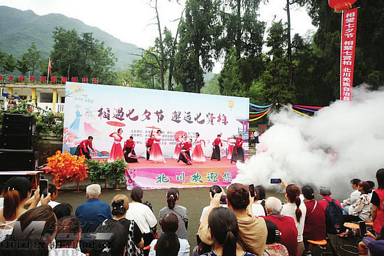 活動(dòng)在轉(zhuǎn)山會(huì)中拉開帷幕,轉(zhuǎn)山會(huì)通過莊重肅穆的祭山儀式,還原了民間傳統(tǒng)的祭祀情景,讓現(xiàn)場(chǎng)觀眾體驗(yàn)到原汁原味的民俗民風(fēng)。緊接著,由北川藝術(shù)團(tuán)體和當(dāng)?shù)厝罕妱?chuàng)作的音舞詩(shī)畫古風(fēng)羌韻文化情景劇上演,《童叟憶情長(zhǎng)》《七夕彩舞》《郎吟訓(xùn)·童承家風(fēng)傳》《鵲橋書生會(huì)》《羌山情海·木姐珠與斗安珠》等歌舞節(jié)目接連登場(chǎng),展現(xiàn)著北川人民對(duì)生活的贊美。