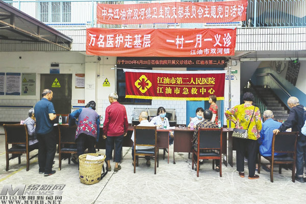 “萬名醫(yī)護(hù)走基層一村一月一義診”活動(dòng)是江油鄉(xiāng)村振興八大專項(xiàng)行動(dòng)之一。該活動(dòng)每月都會(huì)在江油各建制村開展一次,主要為群眾提供免費(fèi)問診、常規(guī)體檢、健康指導(dǎo)、慢病隨訪等服務(wù)。義診活動(dòng)還結(jié)合上門服務(wù)進(jìn)行,為失能老人送去健康,真正做到把服務(wù)送到村民家門口。