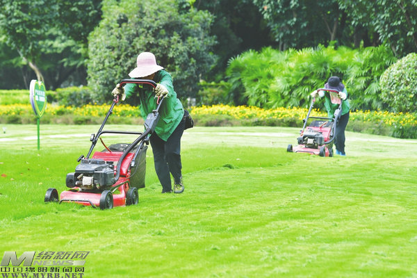 修剪草坪(記者王勇攝)