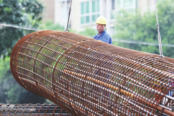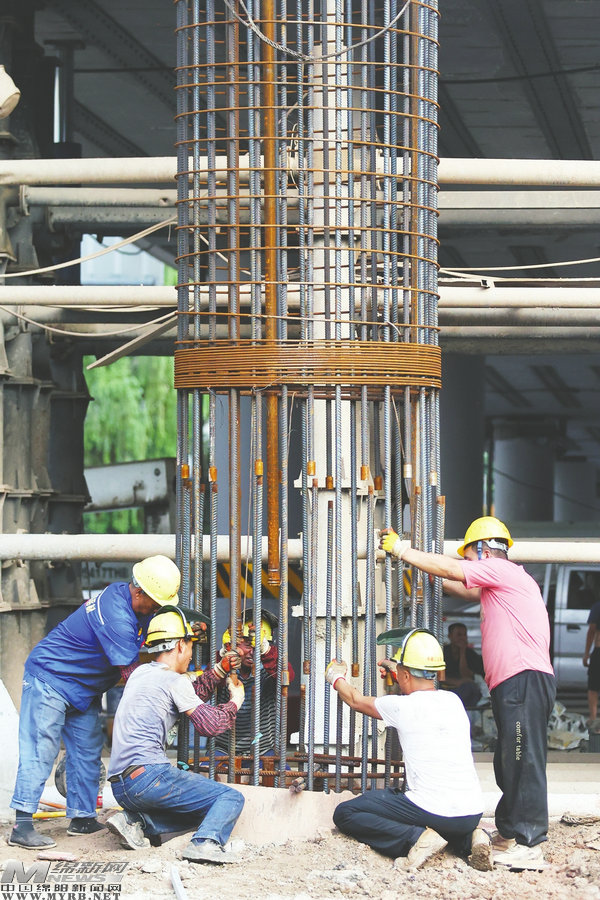 綁扎鋼筋(記者陳冬冬攝)