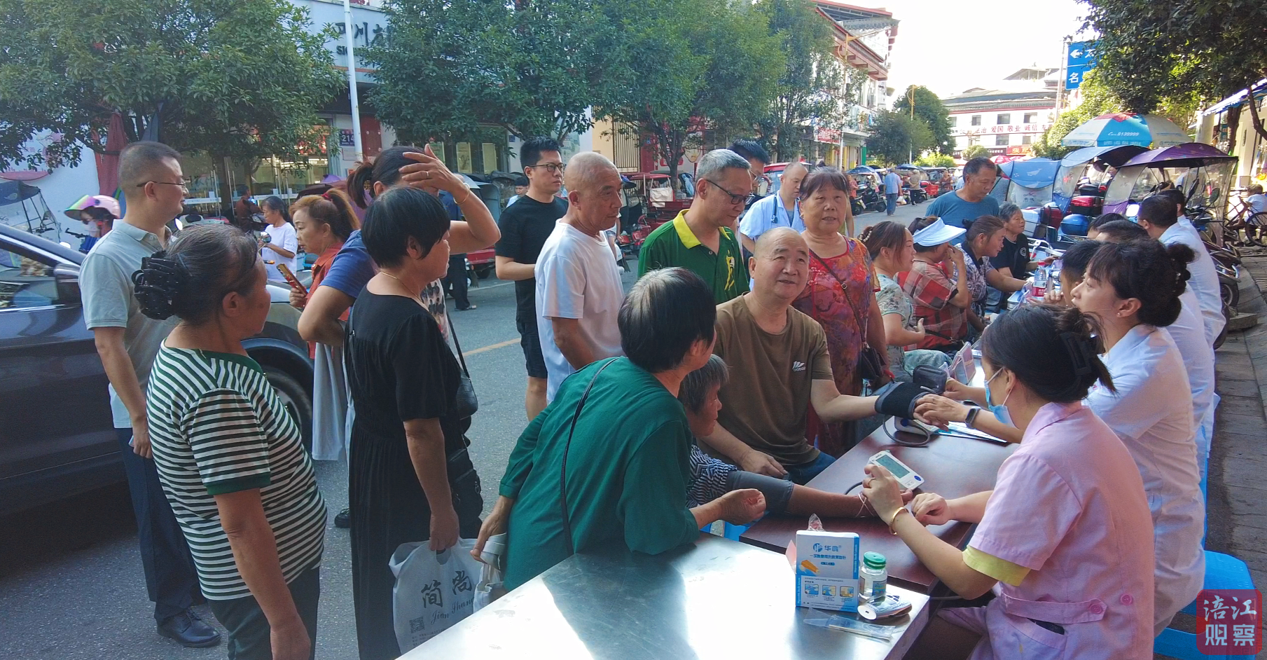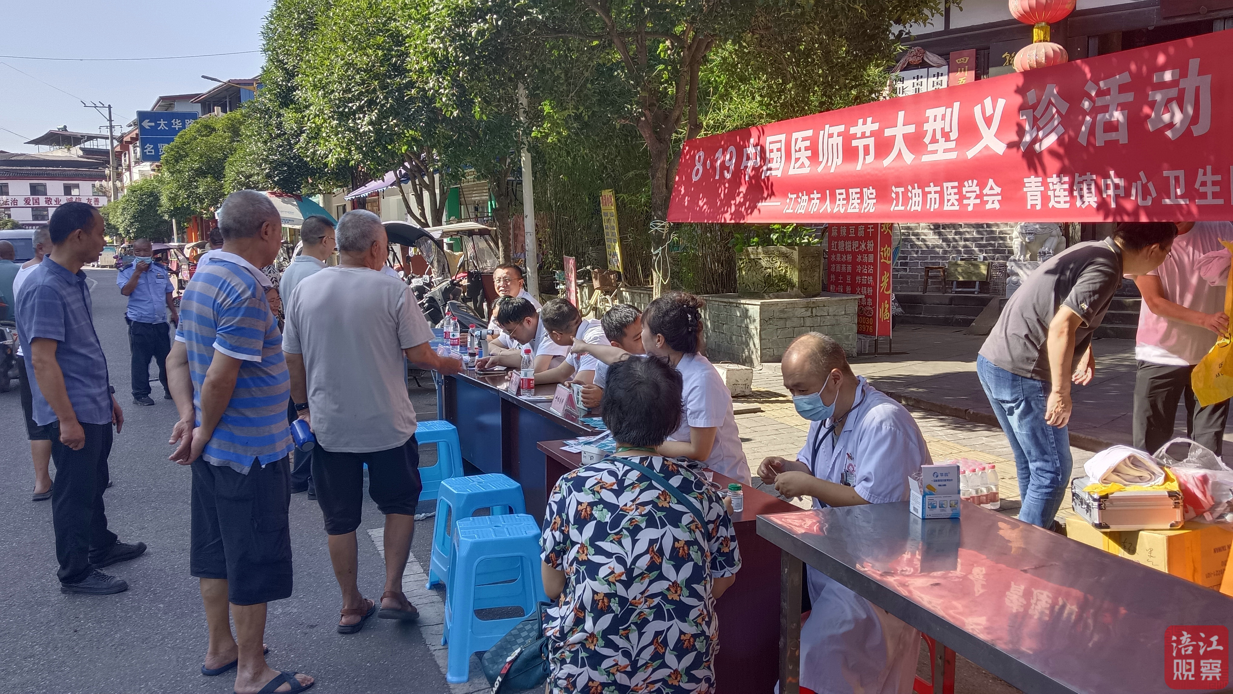 在青蓮集鎮(zhèn)文化廣場,一場大型義診活動吸引著上街趕場的群眾上前咨詢、就診。