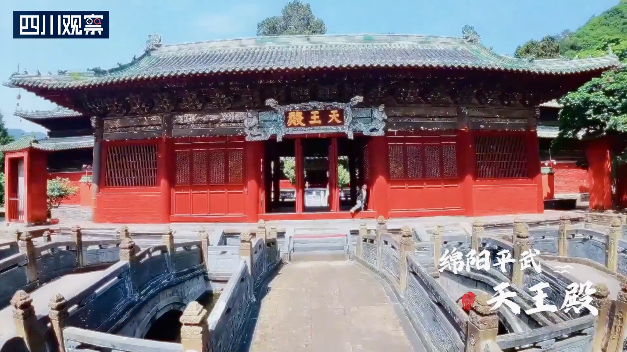 綿陽平武報(bào)恩寺:在游戲宣傳片中有一個(gè)雞頭人身的妖怪飛身將天命人踩在腳下的畫面,而起飛時(shí)腳下的建筑正是平武報(bào)恩寺中的天王殿。報(bào)恩寺,位于四川省綿陽市平武縣城區(qū),是中國保存最為完整的明代早期建筑群落之一。