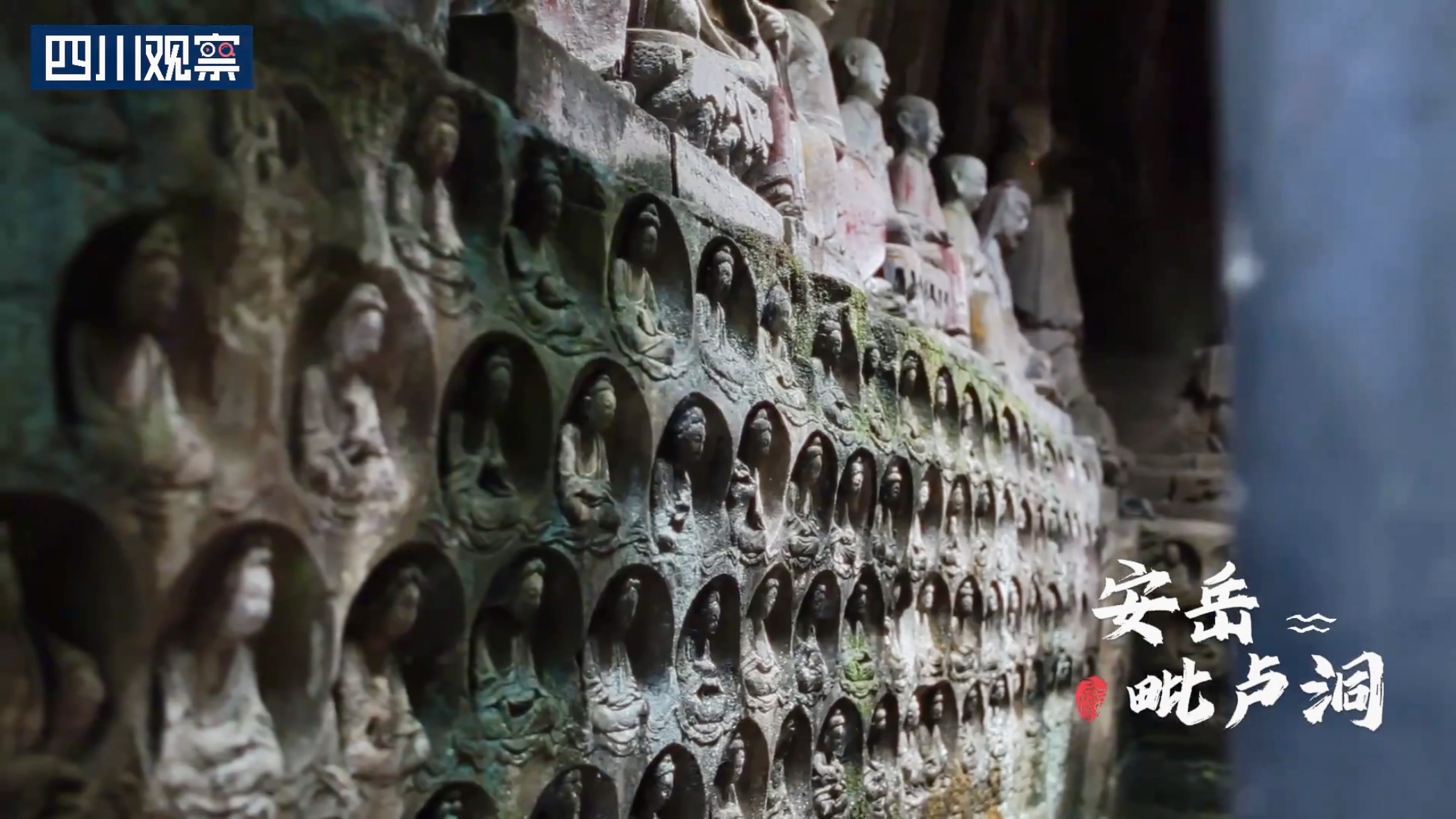 資陽安岳毗盧洞:在《黑神話:悟空》中蜘蛛精姐妹宣傳片中出現(xiàn)了多尊石佛站在身后的畫面,而這一場(chǎng)景對(duì)應(yīng)的正是安岳毗盧洞。毗盧洞石刻造像是儒、釋、道三教合一的石窟造像,題材多樣。其倚山取勢(shì),因此也稱摩崖造像。毗盧洞石刻造像共有造像446尊,刻石題記32處。