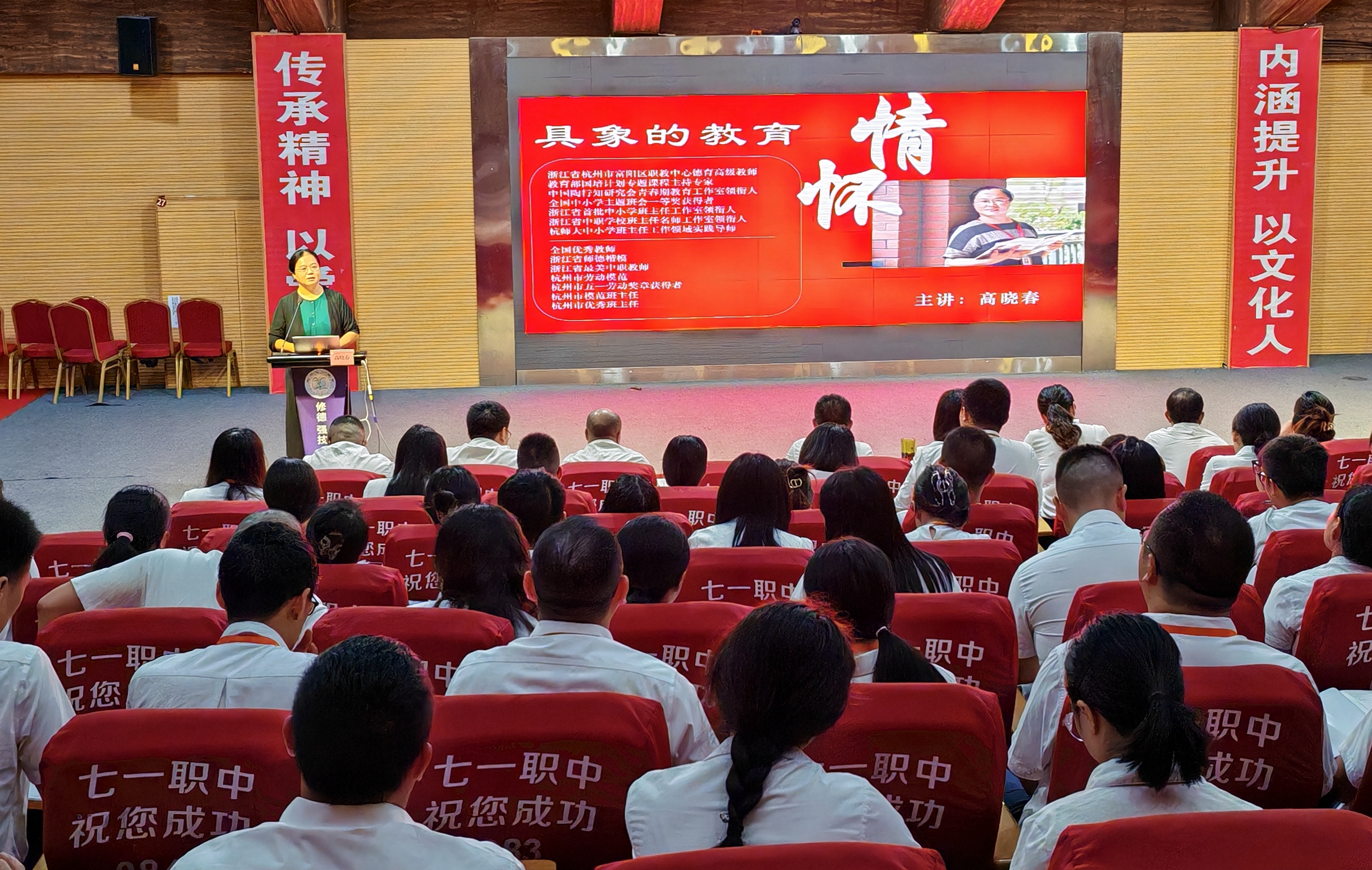 本次培訓(xùn)特邀請浙江省杭州市富陽區(qū)職教中心德育高級教師、全國優(yōu)秀教師—高曉春老師進行現(xiàn)場專題指導(dǎo)。培訓(xùn)由校長付紅梅主持。