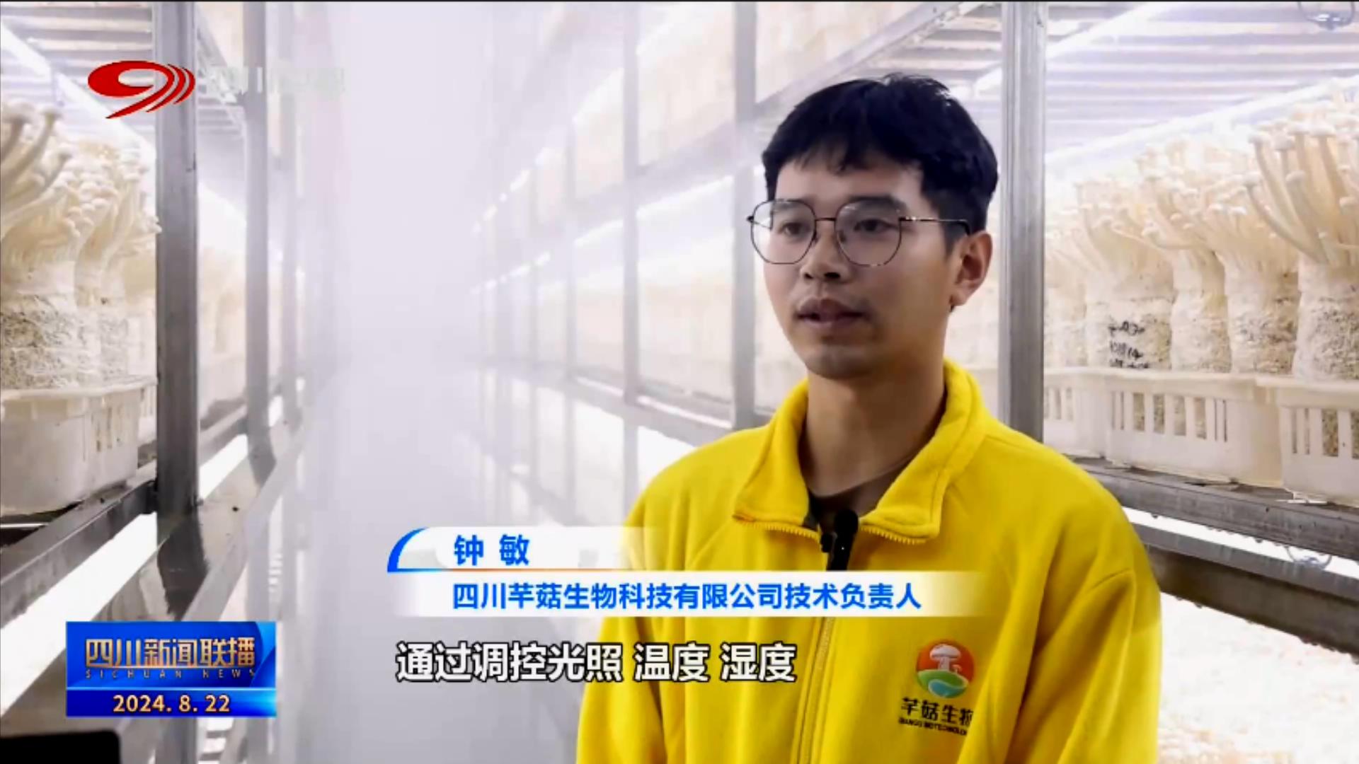 四川芊菇生物科技有限公司技術(shù)負(fù)責(zé)人 鐘敏:通過調(diào)控光照、溫度、濕度以及二氧化碳濃度等生長條件,保證了每一個菌包能順暢呼吸、均勻出菇。目前每個月都有60到70噸海鮮菇發(fā)往越南銷售。
