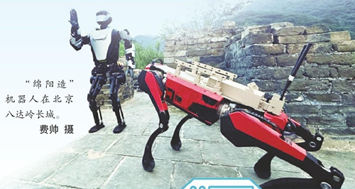 大會前夕,“綿陽造”機器人登上北京八達嶺長城。人形機器人夸父-MY當起講解員,與游客談古論今;一旁的四足仿生機器狗,完成一輪巡檢維護任務(wù)。目前,四足仿生機器狗生產(chǎn)商中國兵器裝備集團自動化研究所有限公司,正與國家文物局文物古跡司、北京市文物局探索合作。