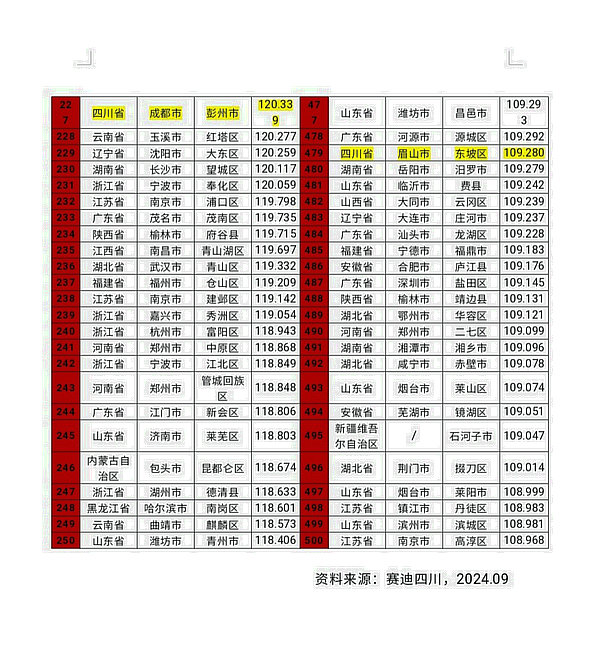9月2日,賽迪工業(yè)和信息化研究院(集團(tuán))四川有限公司(簡(jiǎn)稱“賽迪四川”)發(fā)布《中國(guó)縣域新型工業(yè)化指數(shù)研究報(bào)告(2024)》。在縣域新型工業(yè)化綜合實(shí)力全國(guó)500強(qiáng)中,四川共上榜26個(gè)縣(市、區(qū)),其中6個(gè)市轄區(qū)上榜全國(guó)100強(qiáng)。
